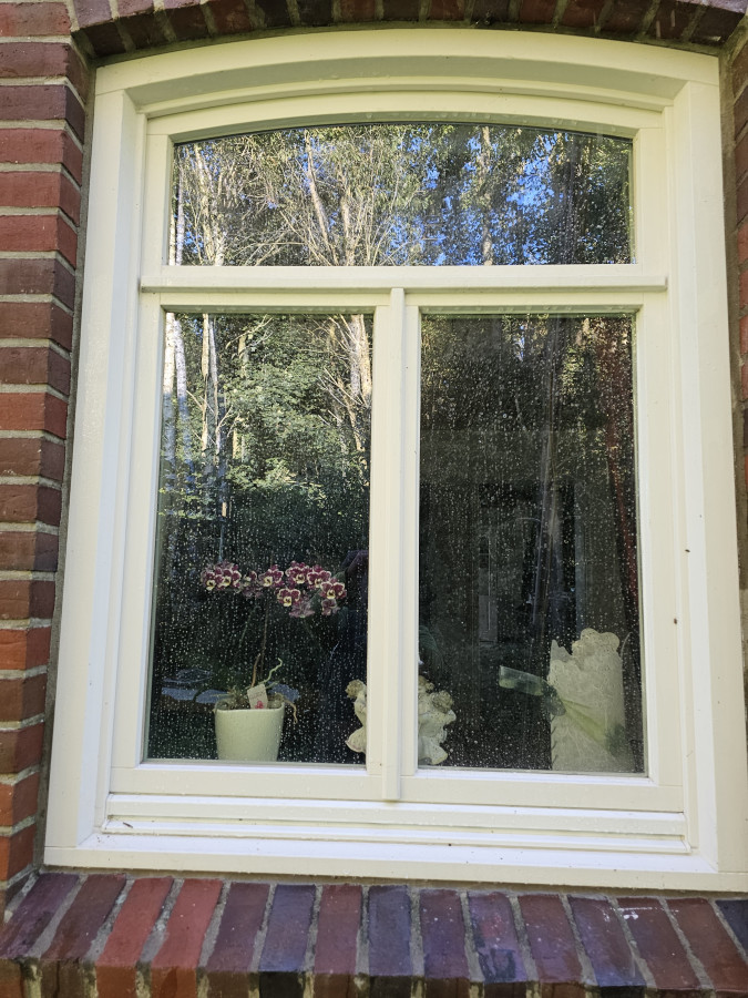 Fenstereinigung von aussen mit Reinwasser. Reinigu